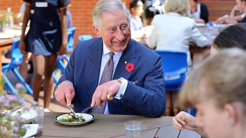 Колишній дворецький розповів, що король споживає як традиційну, так і сучасну їжу, частина якої вирощується в садах його королівських резиденцій. «Він любить овочі і має город в Гайгроуві. Овочі завжди в меню. Якби він збирався перекусити, він би не сидів там з пачкою чипсів», — додав він.
