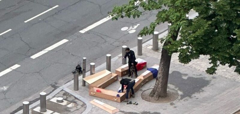 1 червня на набережній Бранлі, поблизу Ейфелевої вежі, знайшли п’ять трун, увібрані у французькі прапори, з написом “Французькі солдати в Україні”. Поліція затримала трьох підозрюваних, і розпочато слідство.